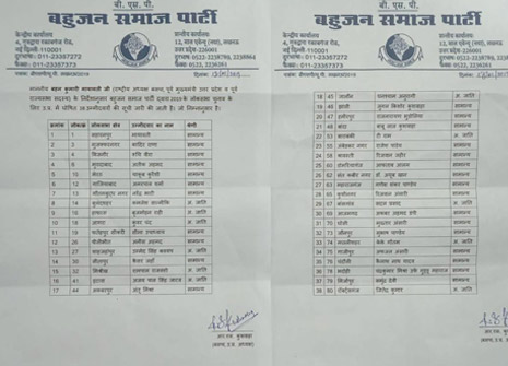 इस फर्जी लेटरहेड पर 'बहुजन समाज पार्टी' का नाम लिखा है, 38 उम्मीदवारों की लोकसभा सीट, उनका नाम, उनकी जाति लिखी है। खास बात ये है कि लेटरहेड के आखिरी में पार्टी सुप्रीमो मायावती का फर्जी हस्ताक्षर भी हैं।