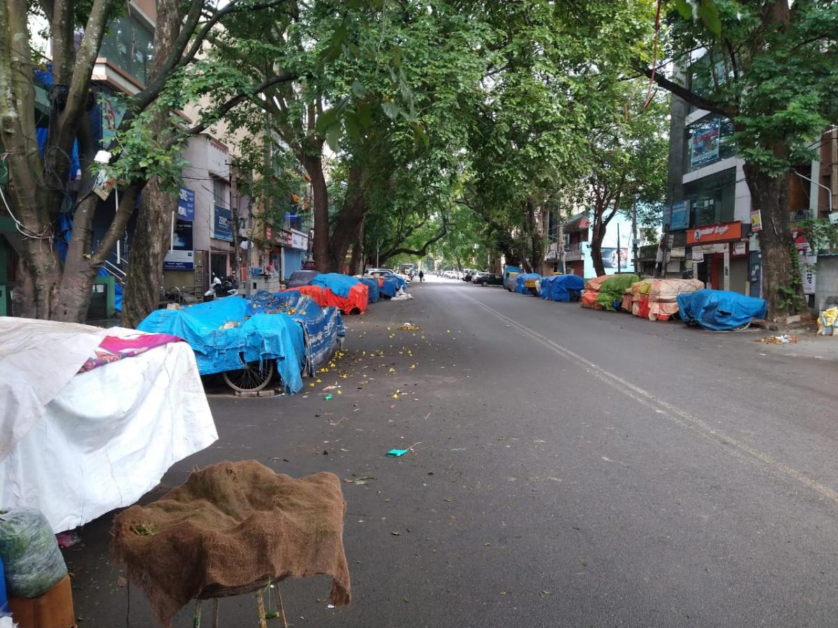 बैंगलोर के जयनगर क्षेत्र में बाजार पूरी तरह से बंद हैं। इस जगह पर आमतौर पर दिन के समय काफी हलचल रहती है।