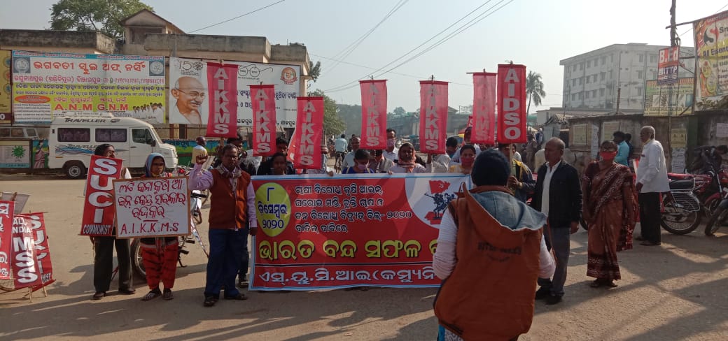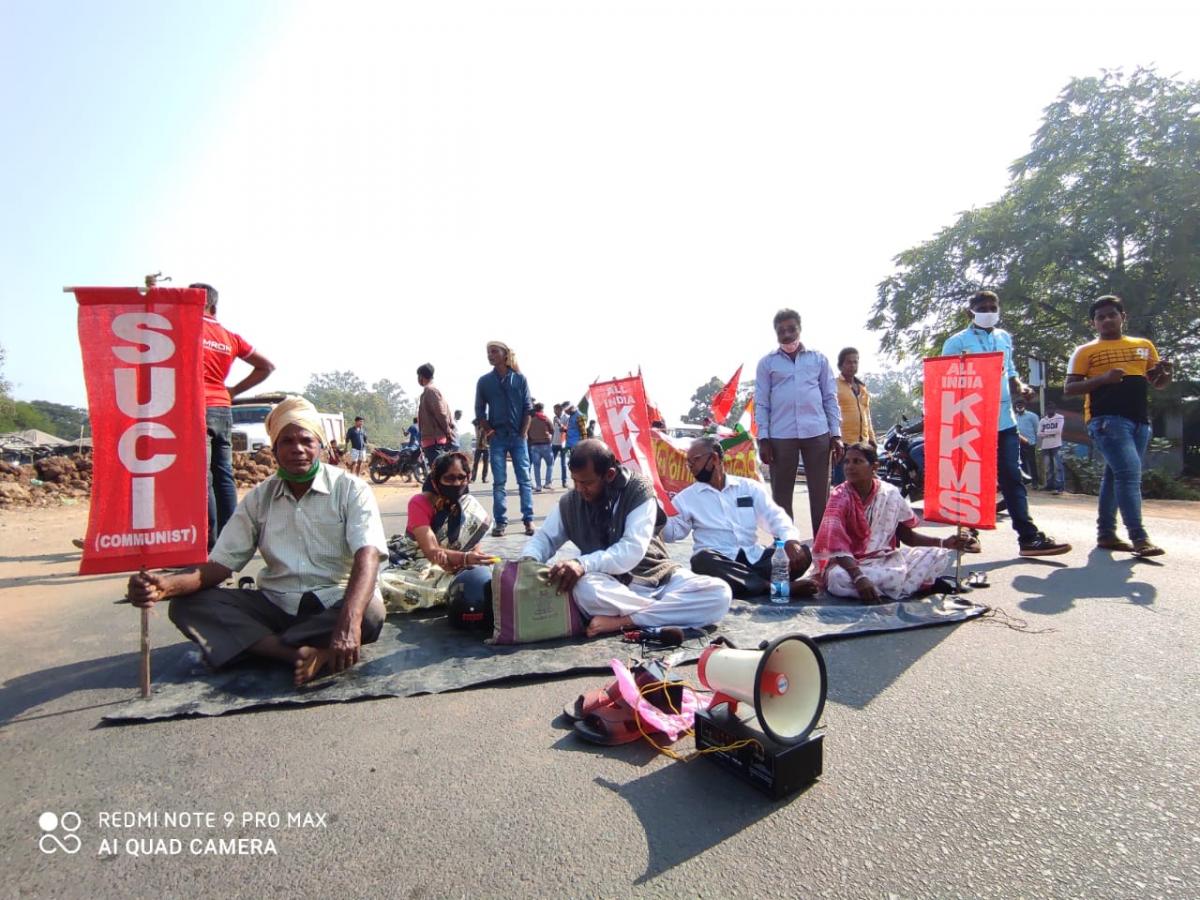 AIKKMS द्वारा जाजपुर उड़ीसा में विरोध के दृश्य।