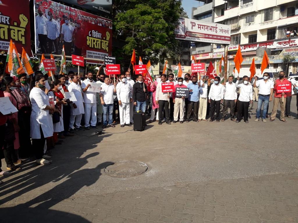 किसानों के समर्थन में शिवाजी चौक पनवेल में विरोध प्रदर्शन