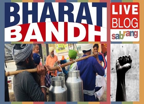 किसानों और उनके समर्थकों द्वारा किए जा रहे देशव्यापी विरोध को लेकर सबरंगइंडिया के लाइव ब्लॉग पर आपका स्वागत है। नए कृषि कानून के विरोध में किसान पिछले 12 दिनों से राजधानी दिल्ली की सीमाओं पर डटे हैं। किसान संगठनों ने आज सुबह 11 बजे से शाम 3 बजे तक भारत बंद का आह्वान किया है। किसानों का समर्थन कई राजनीतिक दल भी कर रहे हैं। इनमें सपा, कांग्रेस, एनसीपी, और AAP भी शामिल है। पूरे दिन देशभर की ताजा खबरें, चित्र, पोस्टर, साक्षात्कार, बाइट्स और कहानियों के लिए बने रहें। पढ़ें, शेयर करें, भाग लें!
