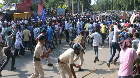 भोपाल। बैकलॉग भर्ती मामले में मुख्यमंत्री शिवराज सिंह चौहान को उनका वादा याद दिलाने आए हजारों दलित बेरोजगारों पर पुलिस ने जमकर लाठियां भांजी। यहां तक कि प्रदर्शनकारी छात्राओं के कपड़े तक फट गए। पुलिस की लाठियां कमर के ऊपर और ज्यादातर पेट या पीठ में मारी गईं।
