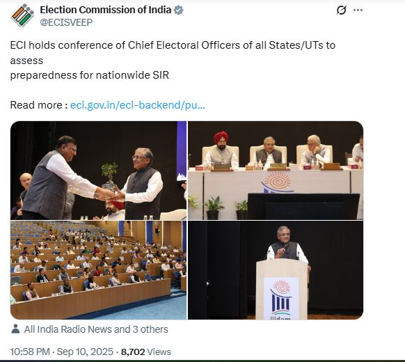 देशभर में 30 सितंबर तक एसआईआर शुरू करने को लेकर चुनाव आयोग ने राज्यों के चुनाव अधिकारियों को तैयार रहने को कहा