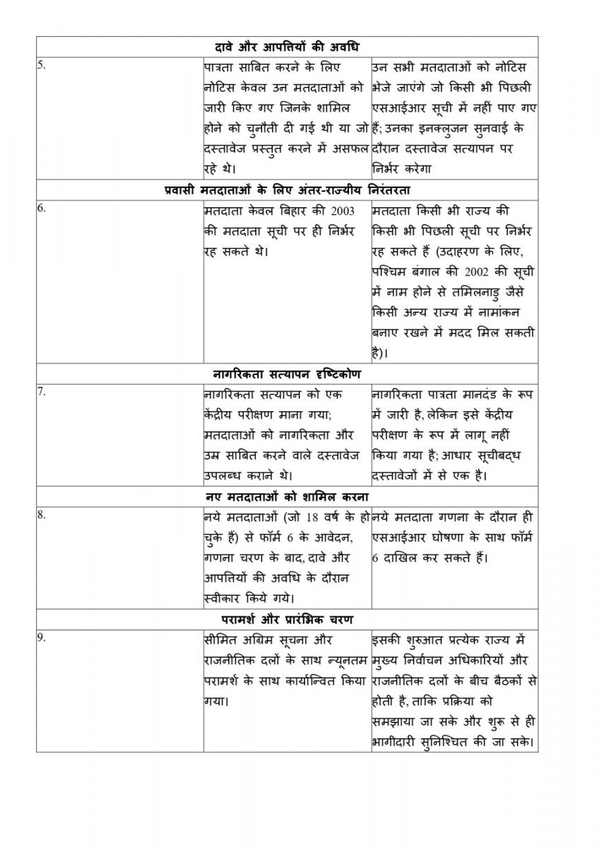 ● और शेष बारह राज्यों में, यह प्रक्रिया अब एक शिथिल दस्तावेज़ीकरण व्यवस्था के तहत क्रियान्वित की जा रही है जो बिहार की प्रतिक्रिया को स्वीकार करती है।