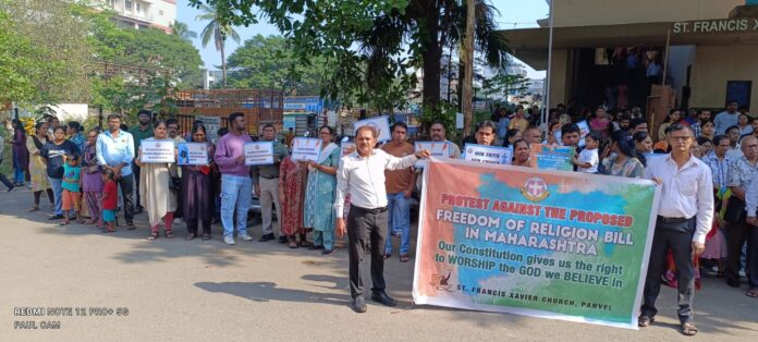 महाराष्ट्र के कैथोलिक समुदाय का प्रतिनिधित्व करने वाले सबसे बड़े संगठनों में से एक, बॉम्बे कैथोलिक सभा (BCS) के नेतृत्व में 35 से अधिक स्थानों पर एक साथ विरोध प्रदर्शन हुए। प्रतिभागी गिरजाघरों के बाहर “My Faith, My Right” (मेरा विश्वास, मेरा अधिकार) और “Don’t Criminalise Compassion” (मानवता को अपराध मत बनाइए) जैसी तख्तियां लेकर इकट्ठा हुए। उनका कहना था कि प्रस्तावित विधेयक, जो “बलपूर्वक धर्मांतरण” को रोकने का दावा करता है, वास्तव में स्वेच्छा से किए गए धार्मिक विश्वासों की अभिव्यक्ति, मानवीय कार्यों और सामाजिक सेवा को अपराध की श्रेणी में डाल सकता है।
