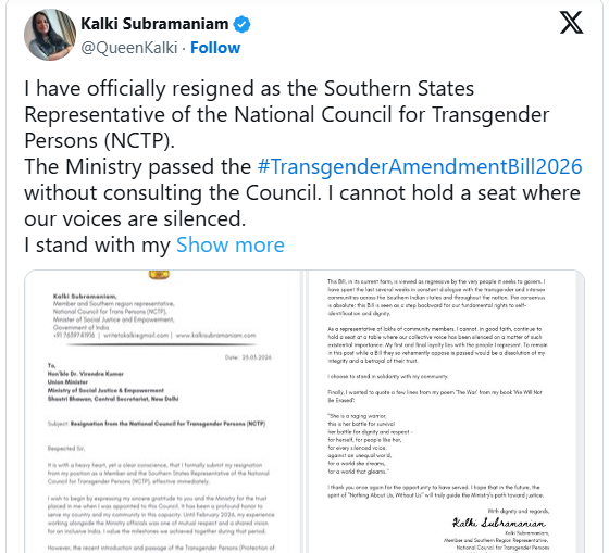 संसदीय विरोध और सड़क-स्तर के प्रदर्शनों से परे, ट्रांसजेंडर व्यक्ति (अधिकारों का संरक्षण) संशोधन विधेयक, 2026 से जुड़े विवाद का सबसे उल्लेखनीय पहलू स्वयं संस्थागत ढांचों के भीतर से उभरती असहमति रही है। यह महत्वपूर्ण है क्योंकि यह केवल वैचारिक असहमति को ही नहीं, बल्कि उन निकायों के भीतर विश्वास के टूटने को भी दर्शाता है, जिन्हें विशेष रूप से ट्रांसजेंडर अधिकारों का प्रतिनिधित्व करने, उन पर सलाह देने और उनकी रक्षा करने के लिए बनाया गया था।