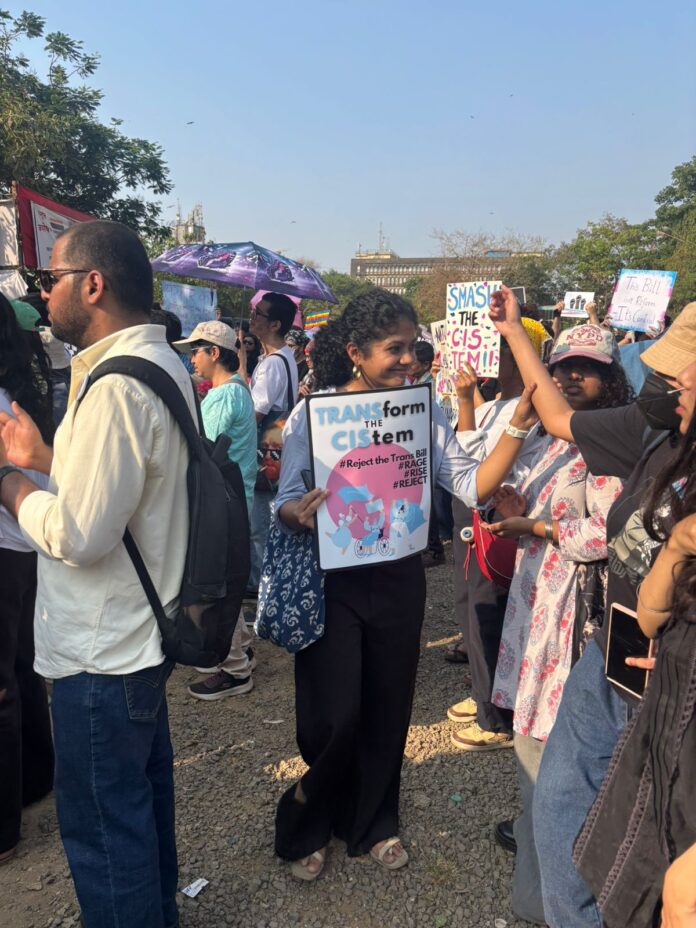 सबसे ज्यादा सुर्खियों में रहने वाले विरोध प्रदर्शनों में से एक मुंबई में हुआ, जहां 200 से ज्यादा लोग आजाद मैदान में एक शांतिपूर्ण लेकिन जोश भरे प्रदर्शन के लिए जमा हुए। 'द हिंदू' ने इस रिपोर्ट को प्रकाशित किया। इस विरोध प्रदर्शन की खासियत सिर्फ नारे और तख्तियां ही नहीं थीं, बल्कि इसमें सांस्कृतिक विरोध का एक अनोखा तरीका भी अपनाया गया। प्रदर्शनकारियों ने एक मशहूर बॉलीवुड गाने- "बिल तो कच्चा है जी"- का एक नया रूप गाकर, व्यंग्य को राजनीतिक आलोचना का एक हथियार बना दिया। अमका नाका ट्रांस बिल’ (हमें ट्रांस बिल नहीं चाहिए) और ‘हम अपना हक मांगते हैं, ना किसी से भीख मांगते हैं’ जैसे नारों ने एक स्पष्ट मांग को सामने रखा कि- हमें शर्तों वाली मदद नहीं, बल्कि अपने अधिकारों की पहचान चाहिए। इस जमावड़े में ट्रांसजेंडर लोग, उनके परिवार और उनके समर्थक एक साथ आए; कई लोगों ने इस बात पर जोर दिया कि ऐसे समाज में जहां कलंक अभी भी रोजमर्रा की जिंदगी को प्रभावित करता है, वहां परिवार का साथ बहुत जरूरी है। कई वक्ताओं ने चेतावनी दी कि यह बिल डर को और बढ़ा सकता है और लोगों को समाज से और भी ज्यादा अलग-थलग कर सकता है।