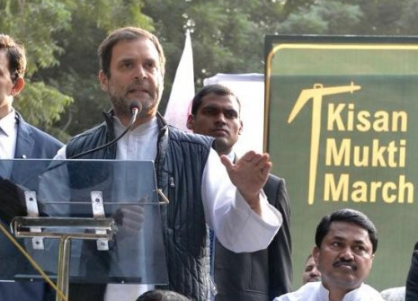 गांधी ने किसानों की क़र्ज़ माफ़ी का भरोसा दिलाते हुए कहा, ‘अगर 15 लोगों का साढ़े तीन लाख करोड़ रुपये क़र्ज़ माफ किया जा सकता है, तो हिंदुस्तान के करोड़ों किसानों का भी कर्जा माफ़ किया जाएगा.’