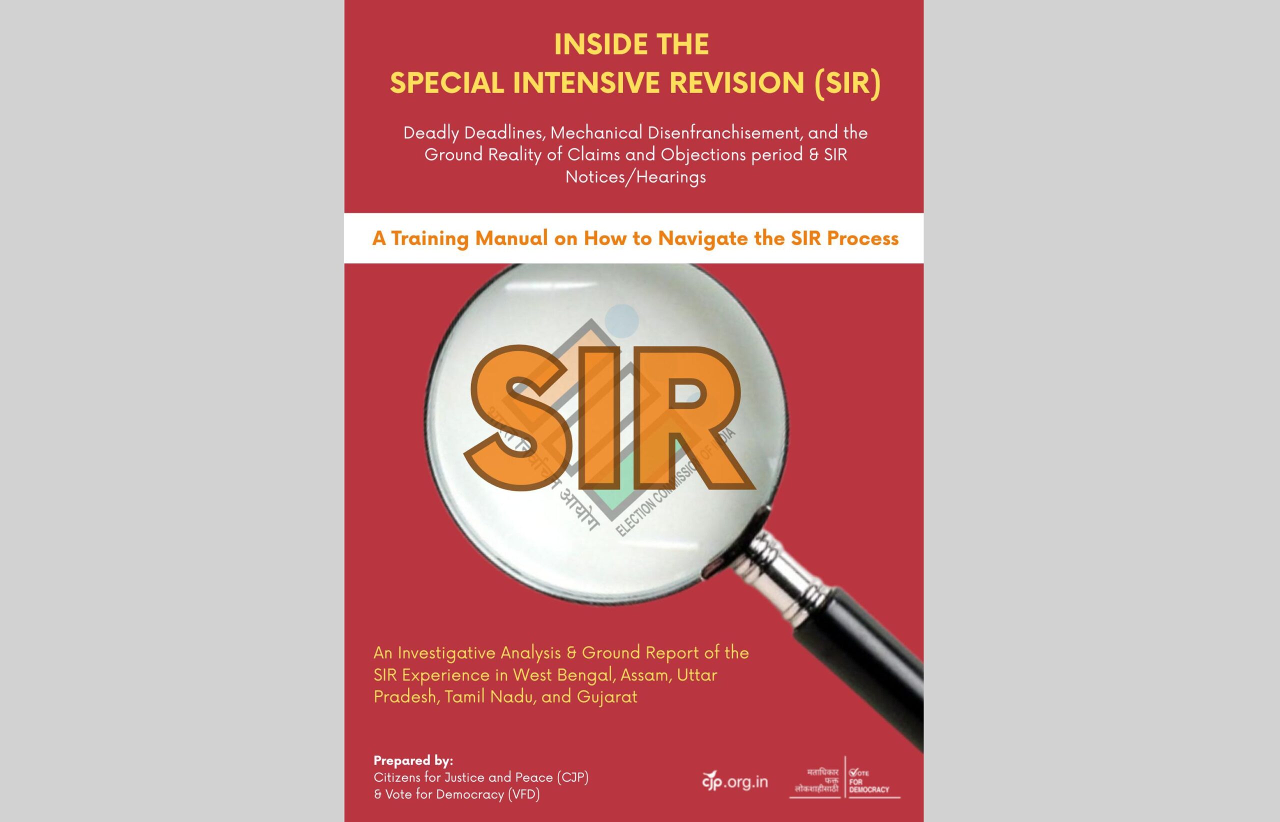 CJP–VFD के प्रकाशन में प्रशिक्षण नियमावली और जमीनी दस्तावेजों को मिलाकर, जारी मतदाता सत्यापन अभियान पर सवाल उठाए गए हैं।