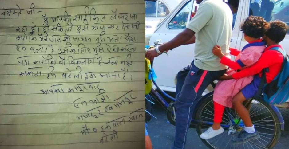 ऐसी ही खबर राजस्थान से है। दरअसल एक प्रवासी मजदूर ने राजस्थान से यूपी पहुंचने के लिए किसी की साइकिल चुराई और उसके बाद एक पत्र लिखकर छोड़ दिया जिसमें उसने माफी मांगी हुई थी।