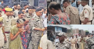 परेड के दौरान, एक महिला ने आरोपियों को थप्पड़ मारने की कोशिश की, लेकिन पुलिस ने उसे रोक दिया।