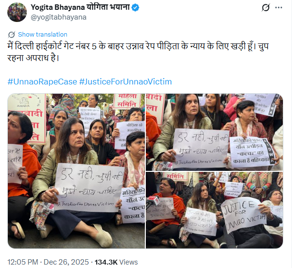 न्याय की आवश्यकता, जनता के गुस्से और 21-24 दिसंबर तक हुए विरोध प्रदर्शनों के बाद ही सेंट्रल ब्यूरो ऑफ इन्वेस्टिगेशन (CBI) ने 25 दिसंबर, 2025 की देर शाम को बीजेपी नेता और पूर्व विधायक सेंगर की सजा और जमानत को सस्पेंड करने के फैसले के खिलाफ अपील करने का ऐलान किया।