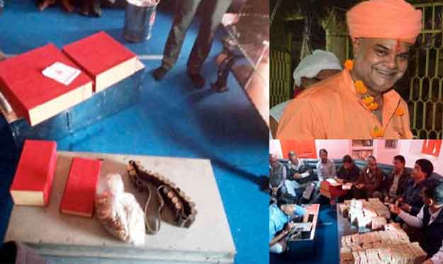 इनमें एक से लेकर दस रुपये के लाखों रुपए के सिक्के, आठ लाख रुपये से अधिक के नोट, तीन लाख से अधिक रुपये के चांदी के बर्तन व आभूषण, बंदूक के 18 कारतूस व लाखों रुपए की जमीनों के कागजात निकले हैं।  मंदिर में चर्चा है कि महंत के कक्षों से इतना सब कुछ निकला है, तो जरूर देवस्थान विभाग की मिलीभगत के साथ चढ़ावे में हेराफेरी हो रही थी। देवस्थान विभाग के अधिकारी चढ़ावे पर निगरानी करते हैं।