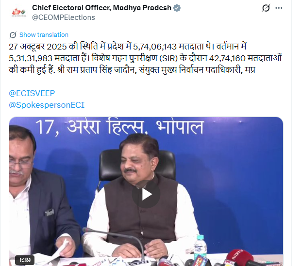 मध्य प्रदेश: विस्तृत श्रेणियां, 42,74,160 नामों को हटाने के साथ बड़ी संख्या