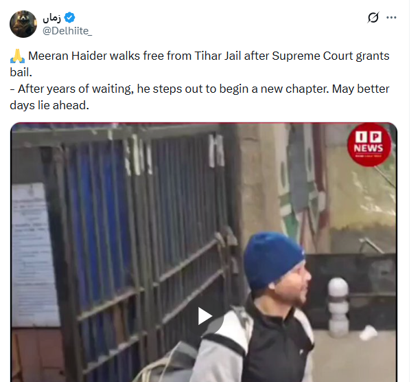 मीरान हैदर के आज़ाद होकर चलते हुए एक अन्य क्लिप को ‘आईपी न्यूज’ नाम के एक संगठन ने अपलोड किया।