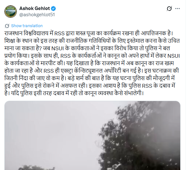 30 सितंबर, 2025 को राजस्थान यूनिवर्सिटी (RU) में हुई घटना इस बात का एक खुलासा करने वाला उदाहरण है कि कैसे इस अनुष्ठान का राजनीतिक इस्तेमाल किया जा रहा है। यूनिवर्सिटी प्रशासन ने, वाइस-चांसलर की मंजूरी से, राष्ट्रीय स्वयंसेवक संघ (RSS) को कैंपस परिसर के अंदर शस्त्र पूजन समारोह आयोजित करने की अनुमति दी - प्रभावी रूप से एक पक्षपातपूर्ण सामाजिक-राजनीतिक संगठन को एक शैक्षणिक जगह पर कब्जा करने की अनुमति दी। इस फैसले ने एक गंभीर संस्थागत चूक को दिखाया, जिससे शिक्षा और विचारधारा के बीच की लाइन धुंधली हो गई। टाइम्स ऑफ इंडिया ने इस रिपोर्ट को प्रकाशित किया।