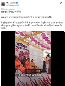28 सितंबर को, भोपाल में एक अन्य कार्यक्रम में, जिसमें पूर्व सांसद साध्वी प्रज्ञा ठाकुर भी थीं, उनके भड़काऊ भाषण के बैकग्राउंड में “बंदूकें, तलवारें और दूसरे हथियार भी” दिखाए गए।