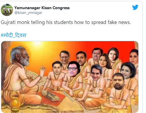 बांग्लादेश की आजादी आंदोलन में शामिल होने को लेकर दिए गए बयान पर ट्विटर यूजर @HitpalBatth8 ने महाभारत युद्ध की एक फोटो शेयर करते हुए उनपर तंज कसा। यूजर ने लिखा कि मोदी समर्थकों को पता है कि बाल नरेंद्र के पास एक टाइम मशीन थी और उन्होंने महाभारत का युद्ध भी लड़ा था। वहीं एक यूजर ने यह भी लिखा कि वे तो रामायण का भी हिस्सा थे लेकिन उन्होंने उसका क्रेडिट नहीं लिया।
