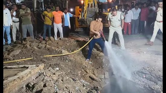 गुरुवार को जब घटनास्थल का निरीक्षण किया गया, तो पाया गया कि स्थानीय निवासियों ने सुरक्षा के मद्देनज़र खुले नाले को मोटे लकड़ी के लट्ठों से ढक दिया था।