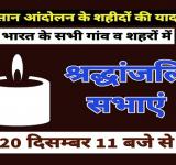 आंदोलन में जान गंवाने वालेे किसानों की याद में श्रद्धांजलि सभा आज