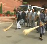 संसद परिसर में भाजपा सांसद हेमा मालिनी ने हवा में लगाया झाड़ू, सोशल मीडिया पर हुईं ट्रोल